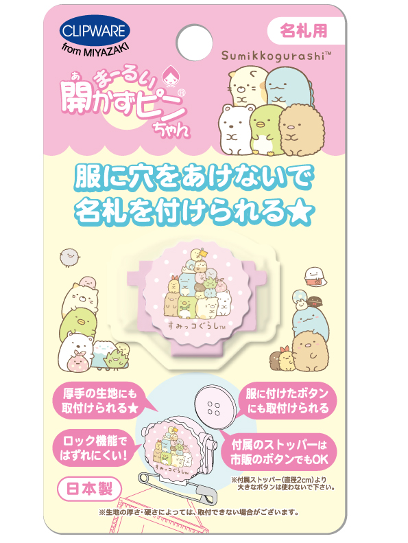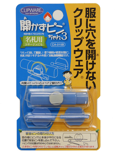 元祖「服に穴を開けない名札用留め具/開かずピンちゃん」を製造販売する会
