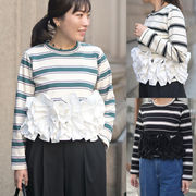 2025年INS 秋冬新作 気質 おしゃれ フリル 大ポケット ストライプシャツ レディース