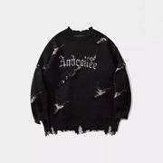 ニット セーター ダメージ加工 英字 ロゴ ジャガード ゆるシルエット ストリート パンク