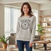 GUESS ビンテージプリント 裏起毛スウェットシャツ 男女兼用