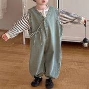 2025春新作 韓国風男の子無地ひも結びデニムサロペット
