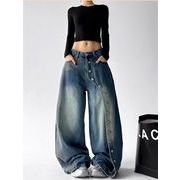 全3色 ワイド バギーパンツ ハイウエスト フリル スリム 着痩せ シンプル