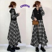 【2024年秋新作】レディース服 ワンピース Aラインワンピース ロング 切り替え チェック柄 S#-L#