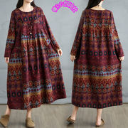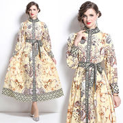オシャレ宮廷風ゆったりプリントワンピースレディース