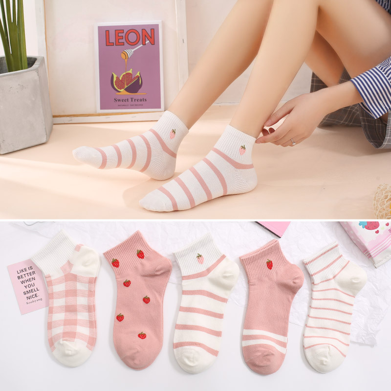 かわいい いちご柄 靴下 レディースソックス 綿の靴下 レディースアパレル 短いの靴下 いちごの雑貨