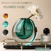 二層ガラスフラワーベース インスタ映え 花瓶 装飾 北欧モダン 透明ガラス 厚みのあるガラス