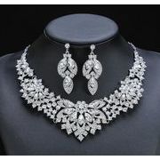 欧米スタイリッシュ ブライダルアクセサリーセット|ウェディングドレス・二次会用ネックレス&ピアス