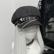 ベレー帽 デニム風 チェーン付き サブカル 地雷系 パンク ストリート 帽子