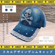スカル 骸骨 ドクロ スタッズ デニムキャップ ラインストーン キラキラ レディース キャップ