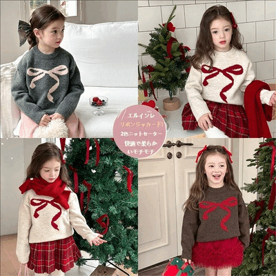 2025秋冬※KUJ☆女の子 リボン柄ニット 厚手セーター クリスマス 甘い系