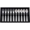 ![]() 【パッケージサイズ】 275×22×145mm 【内容】 コーヒースプーン:120mm×5本、ヒメフォーク:121mm×5本 【材質】 ステンレススチール 【生産国】 日本 【パッケージ形態】 化粧箱入 ![]() |