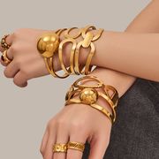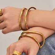 緩やかなカーブでトレンド感のある、スリムウェーブバングルブレスレット。