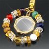 八卦鏡パーツ1個(20×20×2mm 真鍮)、白水晶6個(6×3mm/カット)、黄水晶1個(6mm珠)、6個(6×3mm/カット)、アメジスト1個(6mm珠)、虎目石1個(6mm珠)、赤メノウ1個(6mm珠)、アベンチュリン1個(6mm珠)、ラピスラズリ1個(6mm珠)、ホワイトハウライト1個(6mm珠)、ロンデル6個(6×3mm 真鍮/ラインストーン)[サイズ]約12cm[重量]約13g[中糸]アーティスティックワイヤー[付属品]専用巾着袋、宝石パワーカード[個装サイズ]縦13.8×横8.5×高さ1.5(cm)/18(g) |