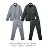 ジャケットのフロントジップとパンツのベルトループ付きウエストが、スタイリッシュさときちんと感を両立。