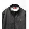 シャープなスタンドカラーのジャケットと、