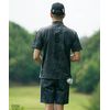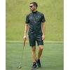 総柄が目を引く、モックネックシャツとハーフパンツのセットアップ。