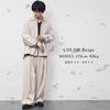 肩が落ちたリラックス感のあるシルエットが特徴のシャツジャケットと、縦に流れるような揺れ感が魅力のワイドスラックスを合わせたセットアップ。