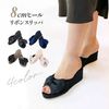 8cmヒールのリボンスリッパ・フリーサイズ/ブラック