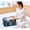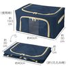天面と長側面にそれぞれ付いているファスナーから中身の出し入れが可能です。側面のファスナー部分には透明窓が付いているので「これ何が入ってたっけ?」となってしまうのを防ぎます。両サイドに持ち手も付いて、移動や持ち運びもカンタン。