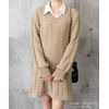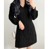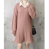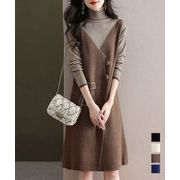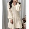 レディース ボリュームスリーブ Aラインワンピース 通勤通学 Vネックショート丈ワンピース 韓国風 膝上丈ワンピース長袖 |