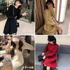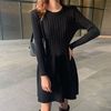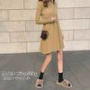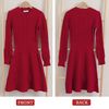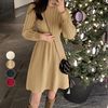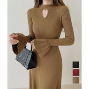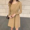 ウエストマーク Aラインワンピース 通勤通学 フレアワンピース シンプル ハイウエスト 長袖 膝上丈ワンピース 秋冬無地 |
