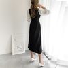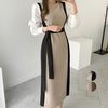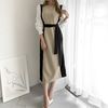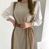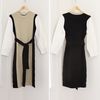 レディース オシャレ カットソーワンピース バイカラー ウエストマーク 長袖ワンピ パフスリーブ フェミニン レトロ風 |