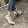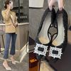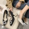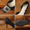 ウェディング ハイヒールパンプス ラインストーン スクエアバックル ビジューピンヒールパンプス 痛くない 靴 歩きやすい |