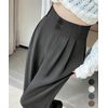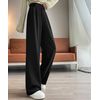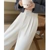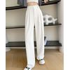 レディース ダブルボタンストレートパンツ オフィスカジュアル 着やせロングパンツ ハイウエストイージーパンツ バックゴム |