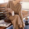 レディース 上下2点セット ニットアンサンブル キーネック 長袖 あたたかセーター オルチャンロングスカート秋冬お洒落 |