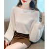 レデイーズ ニットソー ゆったりニット 体型カバー プルオーバー ボートネック カジュアル きれいめ ニットウェア |