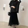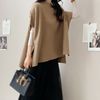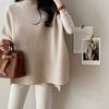 韓国 フレンチスリーブニット スリット リブニットポンチョ 重ね着 大人カジュアル ニットセーター プチハイネックベスト |