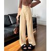 レディースハイウエストパンツきれいめ ウエストゴム 美脚脚長 ワイドスラックス 韓国風 オフィスカジュアルパンツ 着やせ |