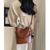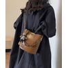 レディース PUレザーバケツバッグチャーム付き こなれ感鞄 韓国風2way斜め掛けバッグ 高見えミニトートバッグレトロ |