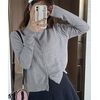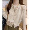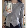 レディース シンプル ベーシック定番ニット ゴールドボタン羽織り コンパクトニットトップス長袖クルーネックニットセーター |
