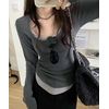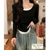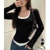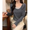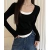 レディース Uネック プルオーバー 細身 無地 セクシー 細見え カジュアル着やせ 大人 おしゃれ フィット フェミニン |