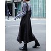 ジャガード素材を使用した、ふんわりAラインのボリュームジャンスカ。柄の凹凸感が表情豊かで上品な印象◎裾に向かって広がるフレアシルエットは身体のラインを拾わず、メリハリのあるハイウエストデザインは細見えするバランスに仕上げました。たっぷりとしたボリューム感やロングレングスな着丈・華奢な細いショルダーストラップが、大人っぽく女性らしさを引き立ててくれます。さらりとした肌触りが心地良く、落ち感のいい素材なので着ぶくれする心配もございません◎肩紐は2段階調整 取り外し可能なので、お好みので着用できるのも嬉しいポイントです。【素材】ポリエステル100%【裏地】なし【透け感】なし【伸縮性】なし【原産国】中国■サイズ着丈:98(肩紐除く)ウエスト:69→88裾幅:200※身幅、ウエスト、ヒップ、裾幅、袖口は1周のサイズです。◆注意事項: 撮影時のライティングや撮影場所により実際の商品と色味が異なって見える場合がございます。※生地の特性上、標記サイズより数センチのズレが生じる場合がございます。2024/AW/スカート/ジャンスカ/ワンピース/キャミワンピース/ロングワンピース/