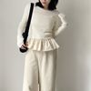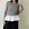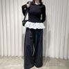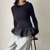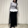トレンドライクなバルーンの裾フリルがポイントの異素材コンビPO 【design point】 ・1枚でお洒落見え間違いなしの映えトップス ・クルーネックデザインなので首元、顔周りをスッキリえるデザイン ・トップスは伸縮性の高いリブ素材 モデル身長:162cm メーカー品番:S1242 フリル/バルーン/大人カジュアル/モード/ガーリー