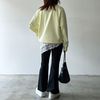 アシメデザインで、ニットやスウェットとレイヤードするだけで一気にこなれた印象に!