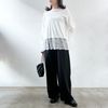 シンプルな天竺素材に、裾レースを重ねたレイヤード風デザインのプルオーバー。