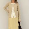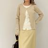 まるでカーディガンを2枚重ねで着用しているようなドッキングデザインが、