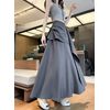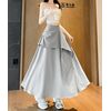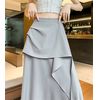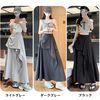 通気性抜群の素材で、ムレない快適着心地! サイドのプリーツデザインがスタイルアップをサポートし、ハイウエスト仕様で脚長効果もバッチリ。Aラインのシルエットに軽やかなフリルが動きのあるお洒落を演出。ラフにもキレイめにも合わせやすい、夏の必須ロングスカートです |