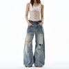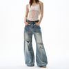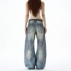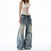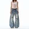 アメリカンヴィンテージ風ダメージ竹節柄バナナカットワイドデニムパンツ メンズ