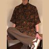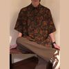 CB☆2025年夏 ヴィンテージ風フローラル総柄デザイン半袖シャツ メンズ ハイセンスシャツ