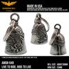 【MADE IN USA アメリカ製】交通安全、魔除けの御守り、ガーディアンベル! アメリカのライダーの間には、事故の原因は「道路にひそむ悪魔」のいたずらだと言われ、 美しい音色で悪魔たちを追い払う 御守りとなるのが、守護者のベルという意味を持つガーディアンベル。 日本でも鈴の音(ね)は神道では魔除けの音と言われています。 ピューター製の鈴はいい音色でデザインも多彩にあります。 バイカー以外にもキーホルダー感覚のお守りとしてお使いいただけます。 タイラップ等でバイクのフレームにも簡単に取り付けできます。 アメリカンバイカーだけではなく、ライダーやドライバーにピッタリな御守りとなっています。