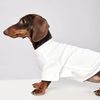 無地でクールなスポーツベースレイヤー。軽やかな着心地と伸縮性の高い生地で、前脚のみをカバーする2本足仕様は動きやすさを優先しつつ首元や胴を適度に保護します。犬・猫どちらにもフィットするカットで、秋のアウトドアや室内での活動着として幅広く活躍します。