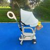 さらっと快適メッシュシート、頭を守るヘッドサポート、ハイシート、日差しをカットする大きな日よけ、サスペンションで振動を吸収。