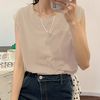 おしゃれ ノースリーブカットソー 無地 クルーネックプルオーバー 韓国ファッショ夏トップス シンプル カジュアルtシャツ |